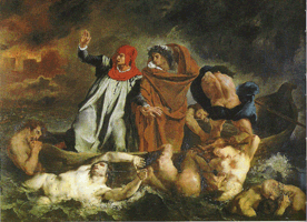Dante bárkája, 1822 "Az utolsó nagy reneszánsz mester és az első modern művész" - Baudelaire méltatta e szavakkal Delacroix-t. A költő nem csak azért tartja a festőt a művészettörténet élvonalbeli alakjaival egyenrangúnak, mivel Delacroix romantikushoz méltóan merész és eredeti, hanem mivel a hagyományokat tisztelve mert merész és eredeti lenni.