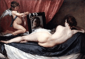 IV. Fülöp udvari festőjének műveltsége egyértelműen megmutatkozott számos munkáján, amikor bonyolult, talányos struktúrákat hozott létre kódolt formában, még olyan egyszerű motívum esetében is, mint amilyen a Venus tükörrel. Ez a finoman erotikus, mezítelen női test - a szürke textílián ernyedten elnyúló isteni test gyönyörű megjelenítése, a zseniális festésmód és a nagyszerű színvilág révén - az európai aktfestészet egyik remekműve.